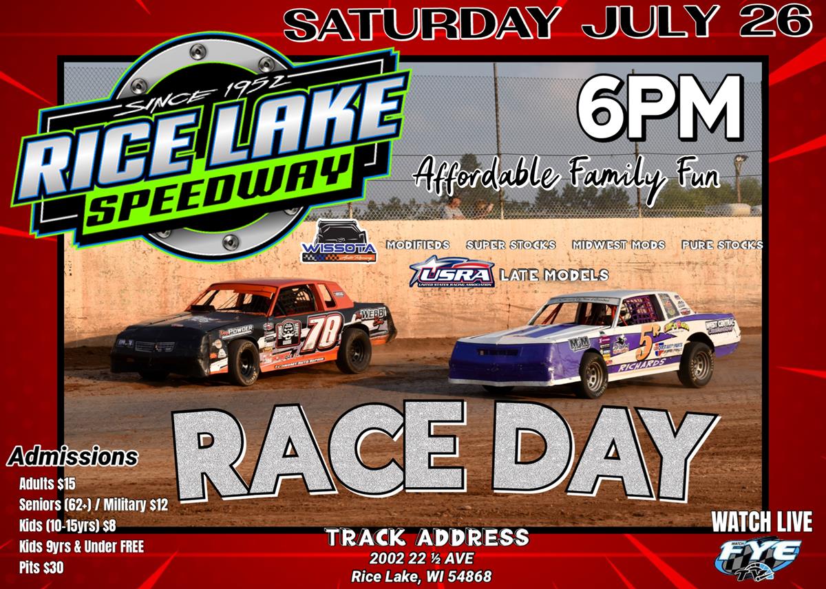 Make plans to join us tonight for another action packed night of racing at the Rice Lake Speedway